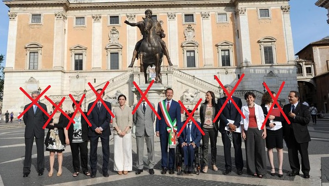 Della prima Giunta Marino se ne sono andati 8 assessori su 12, d’altronde la foto di squadra se la sono scattata sotto la statua di uno che ha scritto i colloqui con sé stesso…