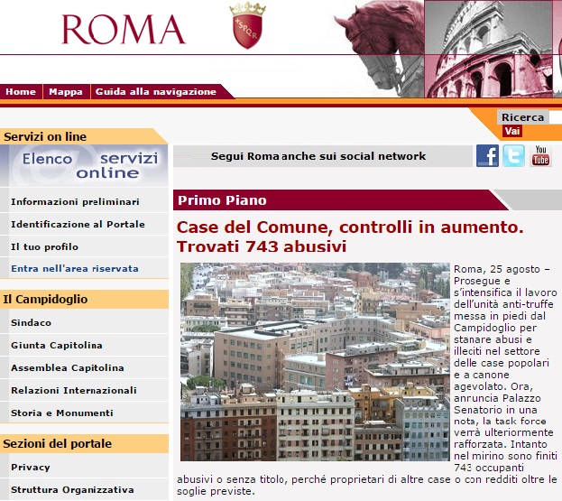 Oggi in prima pagina sul sito del comune si legge un comunicato del palazzo senatorio.