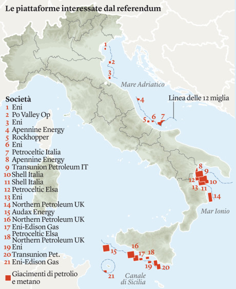 In sostanza, chi vota Sì al referendum si oppone al fatto che le concessioni entro le 12 miglia siano di durata illimitata.