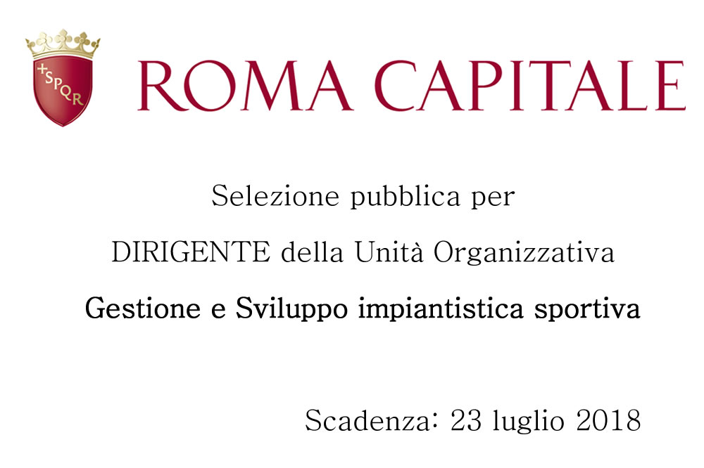 Roma Capitale ha avviato la procedura selettiva pubblica finalizzata all’assunzione di un dirigente specializzato nella gestione e nello sviluppo dell’impiantistica sportiva.