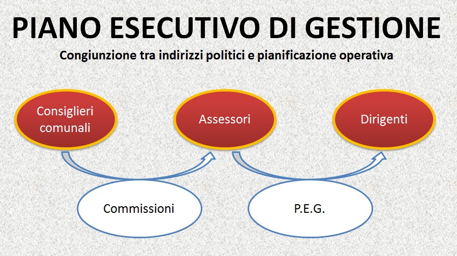 Il P.E.G. detta gli obiettivi ai dirigenti dell’amministrazione. Sembra qualcosa di molto lontano dalla vita quotidiana dei cittadini, ma l’efficienza e l’efficacia della gestione non sono solo principi astratti, sono requisiti fondamentali per garantire servizi di qualità. Una delle novità che saranno introdotte da quest’anno è proprio questa: non più solo un’analisi finanziario-quantitativa delle azioni poste in essere dal personale (tutto) dell’amministrazione, ma la ricerca di un riscontro positivo anche in termini di qualità. Significa individuare nuovi indicatori, nuove misure. Andare a scompaginare le carte, proporre una prospettiva innovativa, forse un po’ “visionaria”. Verificare l’effettiva realizzazione dei progetti di ogni struttura, con scadenze precise, individuate in conseguenza della programmazione politica, e vincere una sfida: tradurre un obiettivo di qualità in un risultato concreto. Efficacia ed efficienza appunto, nella pianificazione e ancor più nella gestione quotidiana.